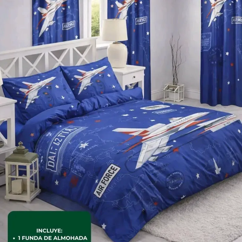 ✈️🛌 Edredones súper cómodos y abrigaditos (¡pero ligeros! 😉). Vienen con 1 funda para almohada. Ideales para camas personales y de 3/4. ¡Como nubes para tus pequeños! ☁️