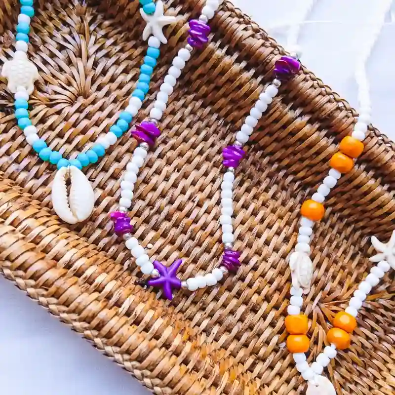 3 diseños diferentes que incluyen caracolas , estrellas de mar y tortuguitas . Ideales para llevar este verano a todas partes🤩