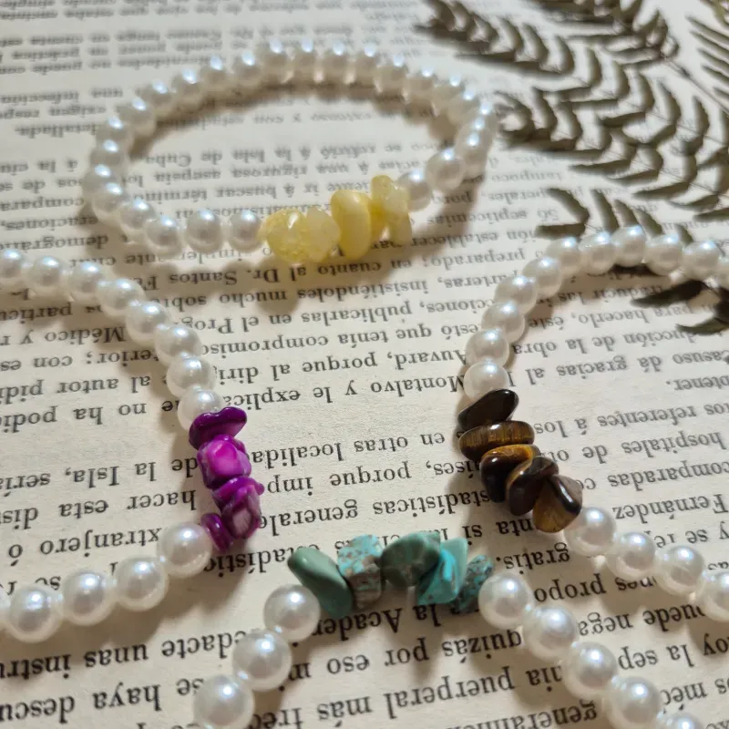 Pulseras confeccionadas con hilo elástico , perlas y piedras naturales. Consultar piedras naturales disponibles en caso de modificaciones