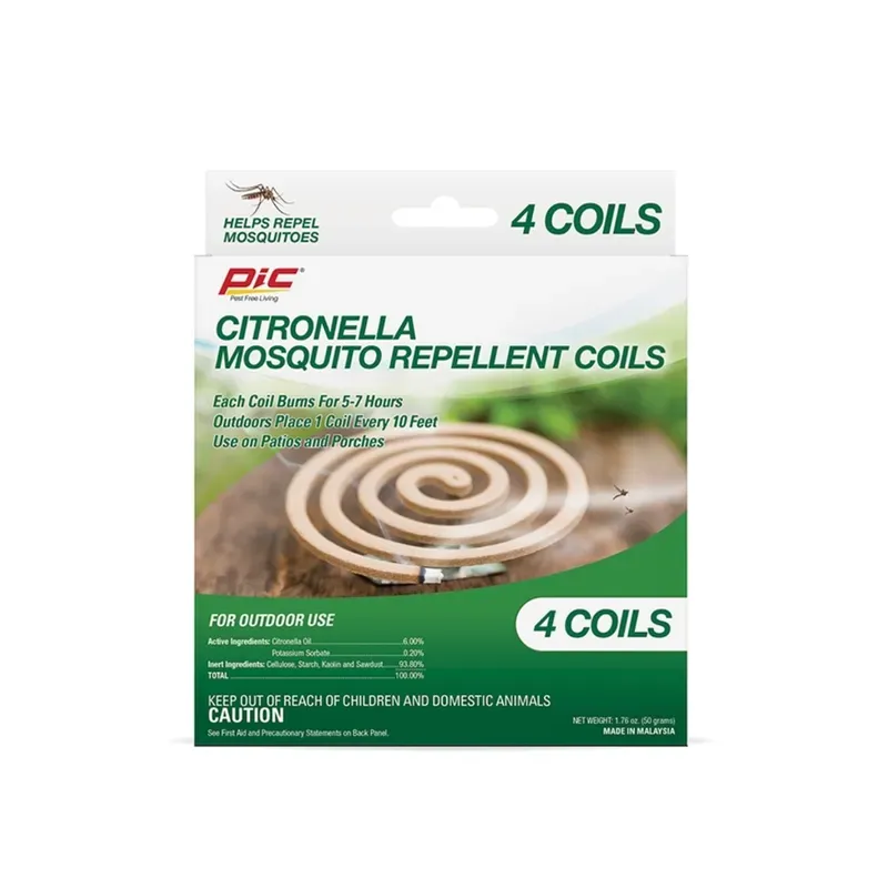 Espirales repelentes de mosquitos con citronela PIC diseñadas para ayudar a repeler mosquitos en áreas exteriores. Ideales para patios, terrazas, porches y espacios al aire libre, proporcionando protección continua durante varias horas.