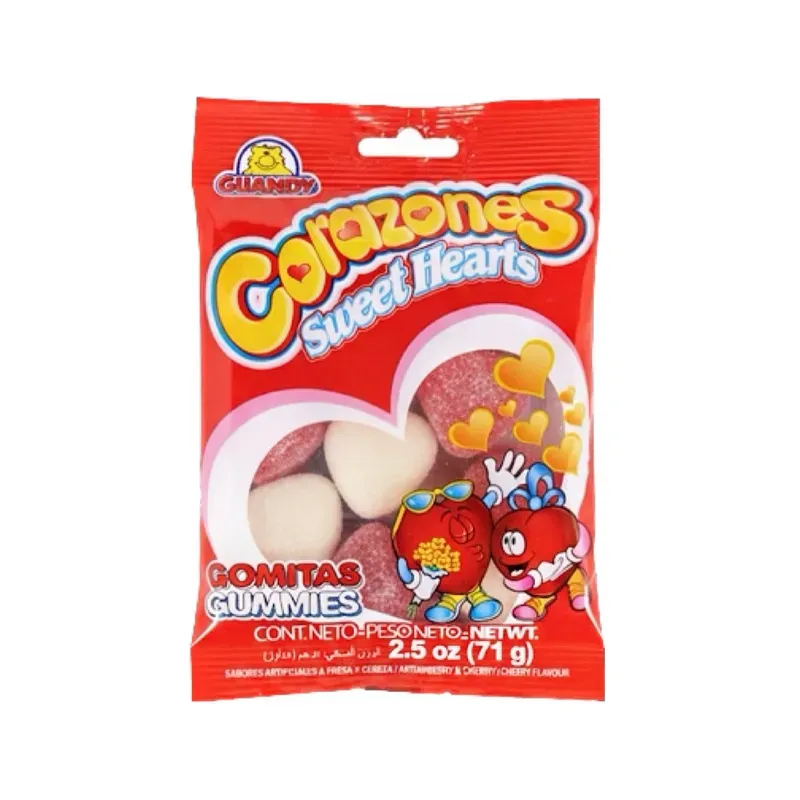 ¡Expresa tu lado más dulce con los Corazones Sweet Hearts de Guandy! Estas deliciosas gomitas con forma de corazón son perfectas para compartir en momentos especiales o simplemente para consentirte con un toque frutal.