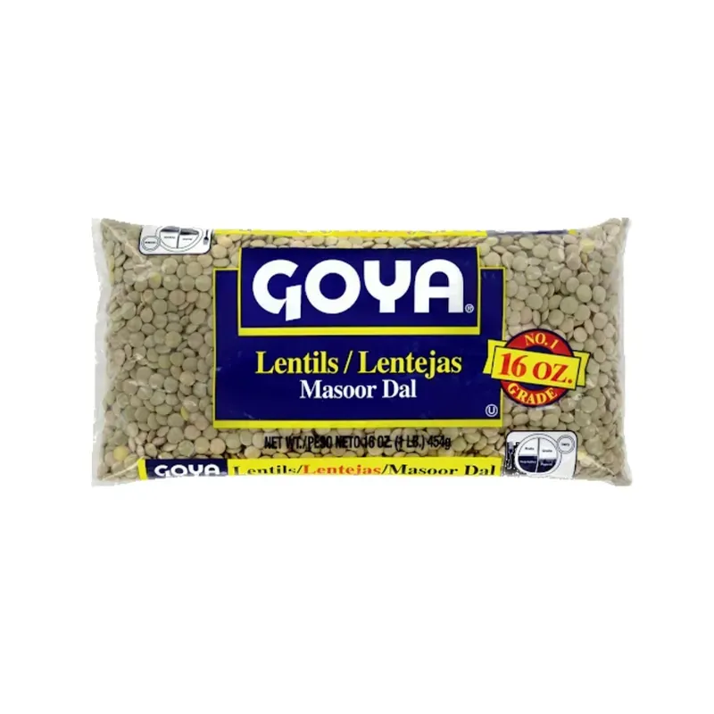 Lentejas secas de alta calidad de la marca Goya, reconocida por sus productos latinos e internacionales. Estas lentejas, también conocidas como Masoor Dal, son pequeñas, de color verde claro, y muy versátiles en la cocina.