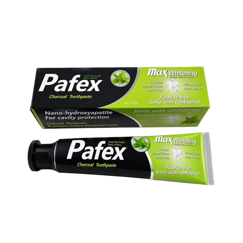 Luce una sonrisa más blanca y saludable con la pasta dental Pafex Charcoal, una fórmula avanzada que combina el poder purificante del carbón activado con la ciencia de la Nano-hidroxiapatita. Diseñada para quienes buscan una alternativa eficaz y libre de fluor para el cuidado oral diario.