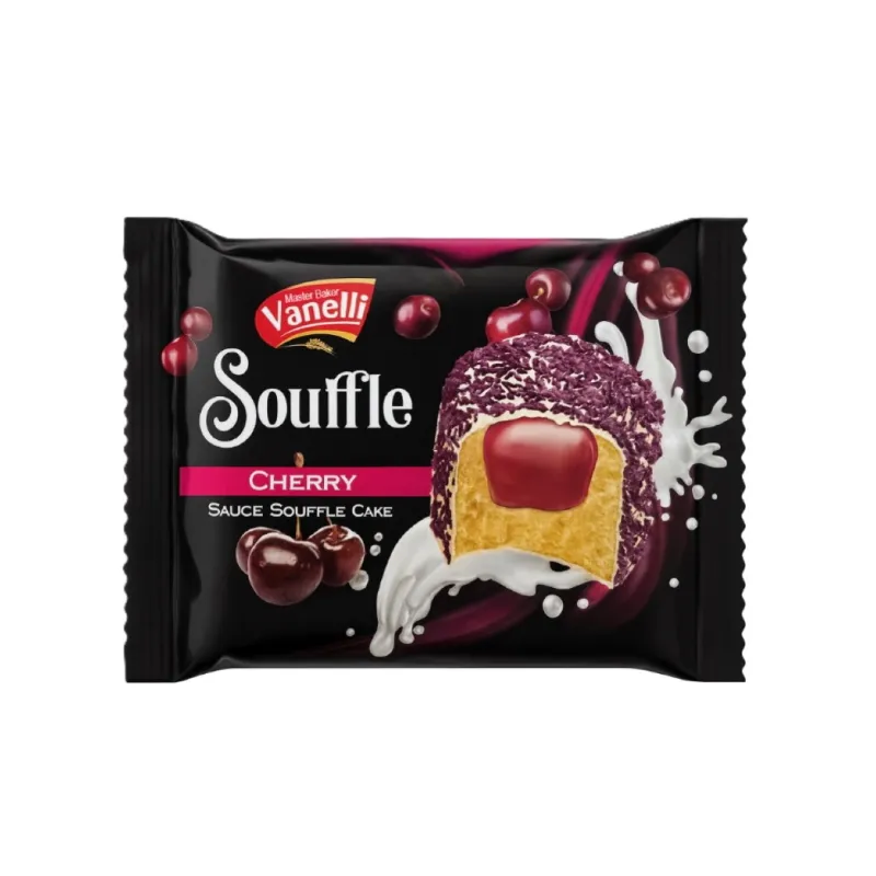 Experimenta la elegancia de la repostería fina en un formato práctico. El Vanelli Souffle de Cereza es un pastelito tipo soufflé que destaca por su textura aireada y su sofisticado corazón frutal, ideal para quienes buscan un snack con un toque gourmet.
