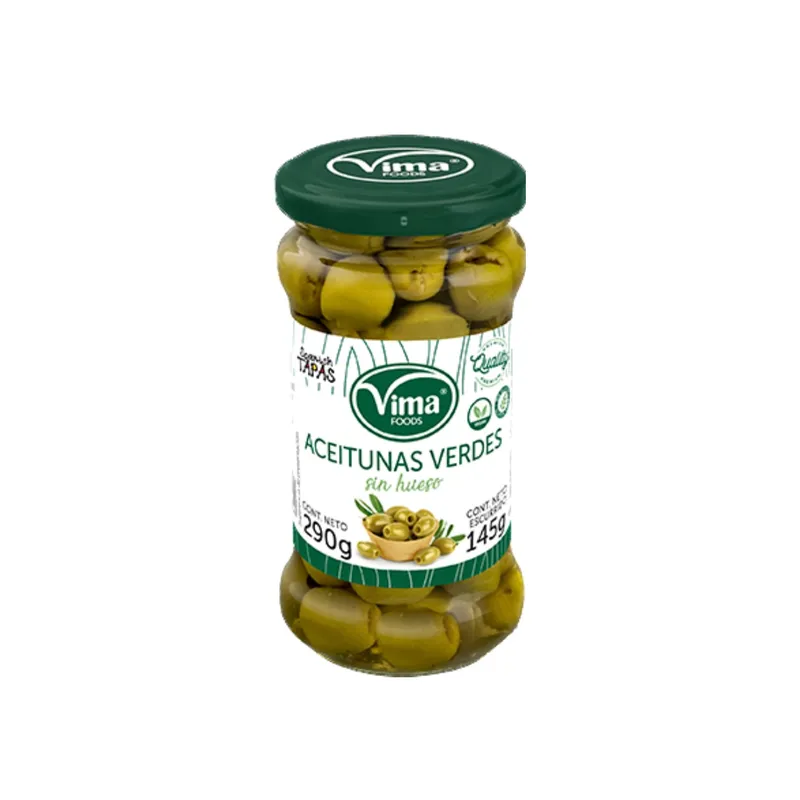 Aceitunas verdes seleccionadas, procesadas y envasadas para conservar su frescura, sabor y textura firme. Se presentan sin hueso, lo que las hace prácticas y listas para consumir en cualquier momento.