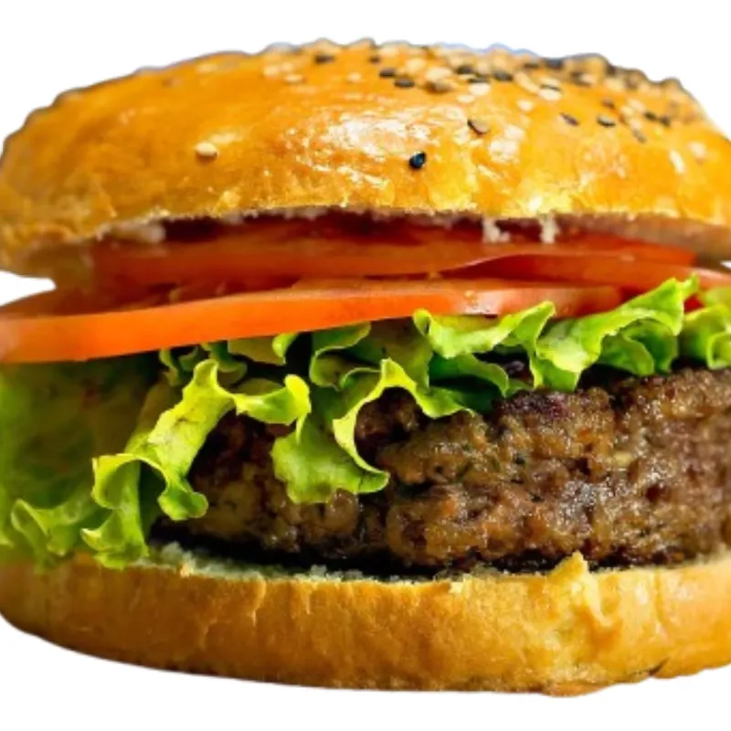 Pan tipo hamburguesa con jugosa hamburguesa de carne de Cerdo y vegetales