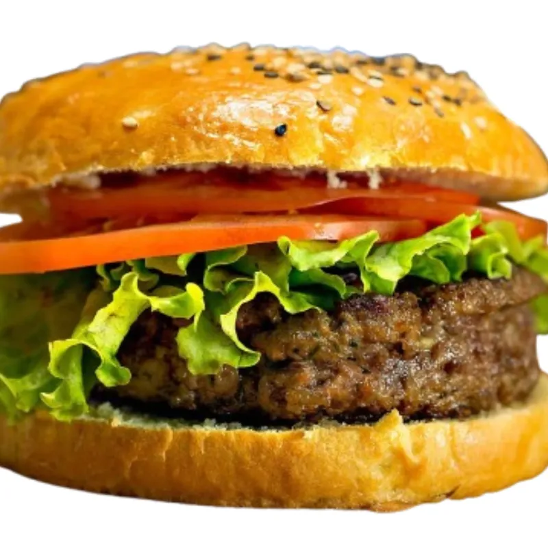 Pan tipo hamburguesa con jugosa hamburguesa de carne de Res y vegetales