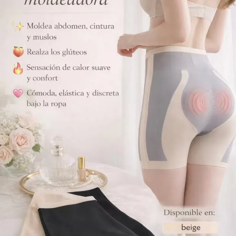 Define tu figura al instante. Moldea abdomen, cintura y muslos, realza los glúteos y ofrece un ajuste cómodo, elástico y discreto bajo la ropa.
