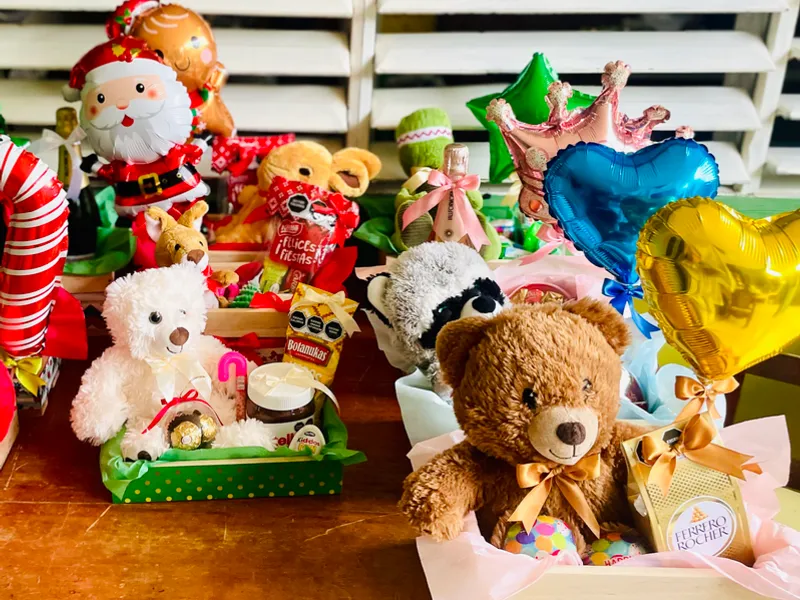 Cesta 4: - Peluche canguro - bota de confituras ricas - nutella 200g - huevo sorpresa - bastoncito de caramelos - vela pinito
