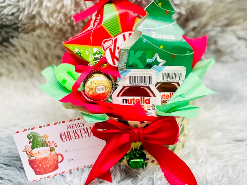 El pack más completo de tus chocolates preferidos: - Estrella KitKat - Pinito Kisses - Mini Nutellas - Ferrero Rocher - Bastoncito de caramelos