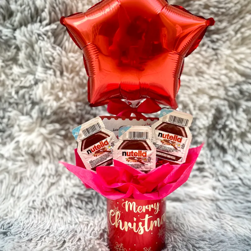 Jarra decorada con globo: - 10 bombones - 3 mini nutellas