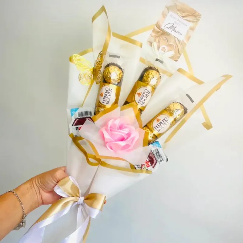• 9 bombones FERRERO • 2 mininutellas • 1 rosa eterna • 1 postal