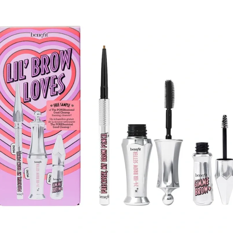 Este kit de maquillaje incluye el set de mini productos para cejas de la marca Benefit , que cuenta con un lápiz, un gel voluminizador y un gel fijador.