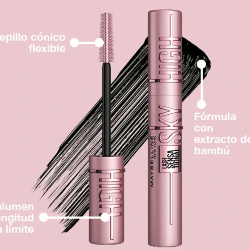 La máscara Lash Sensational Sky High de Maybelline ofrece un volumen completo y una longitud ilimitada. Las exclusivas curvas de pincel para dar volumen y extender cada pestaña desde la raíz hasta la punta.