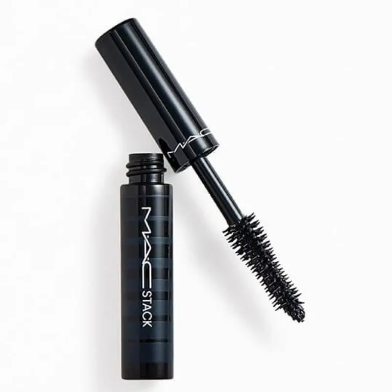 Una máscara de pestañas tamaño de viaje de aplicación infinita y sin grumos que se acumula en capas y de volumen y longitud.