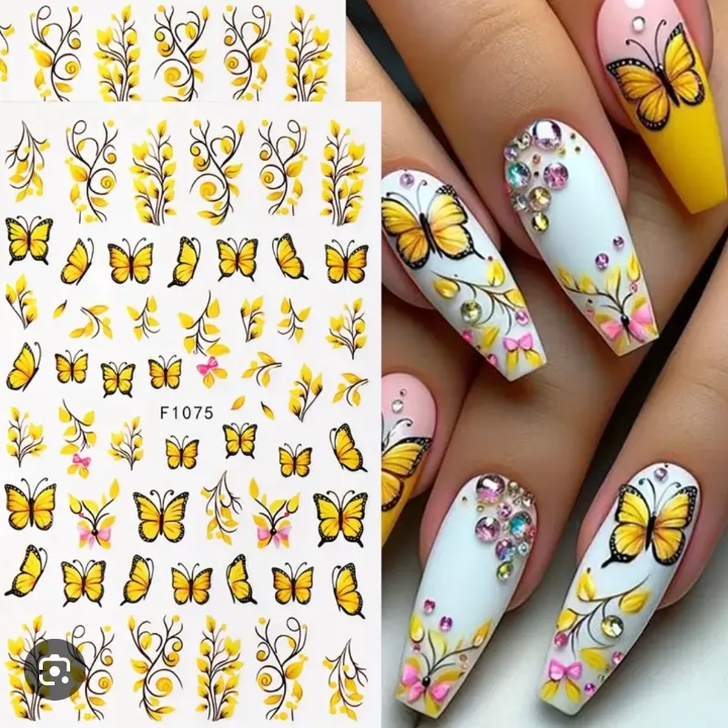 Calcomanía flores y mariposas amarillas