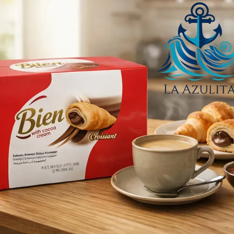 Croissant relleno con crema de cacao, fórmula mejorada para mayor suavidad y cremosidad.