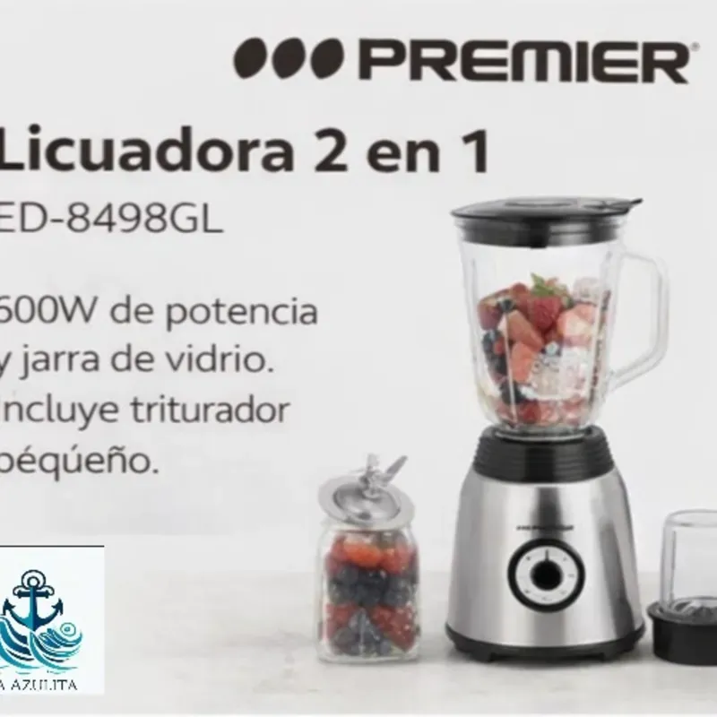 600W de potencia, jarra de vidrio 1.5L y triturador incluido.