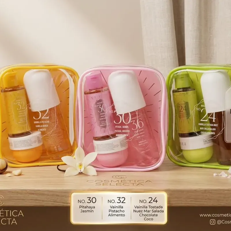 Cosmética Selecta Travel Set: Kits de viaje con fragancias exclusivas. Crema, jabón y perfume.
