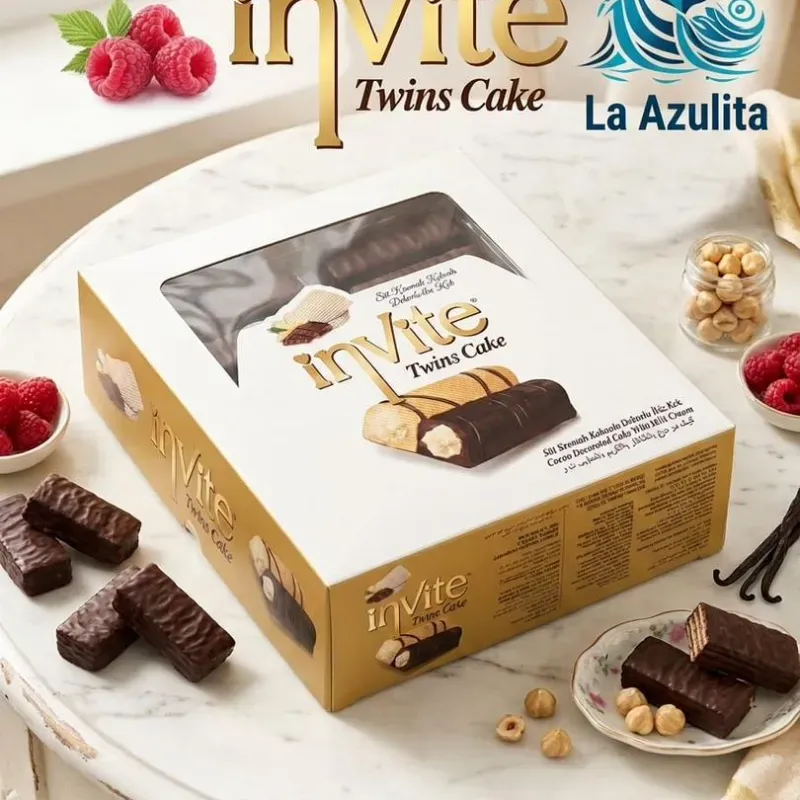 Duo de bizcochos cubiertos de cacao con crema de leche.