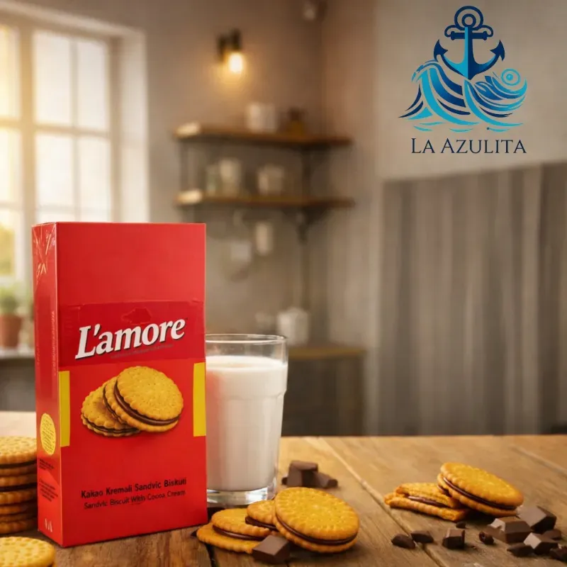 Galleta rellena con crema de cacao, textura crujiente y sabor intenso.