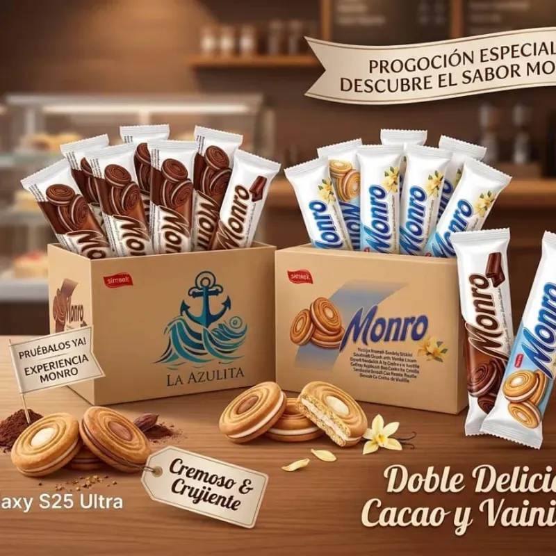 Cremoso y crujiente, disponible en cacao y vainilla. Una doble delicia que conquista con su textura y sabor único.