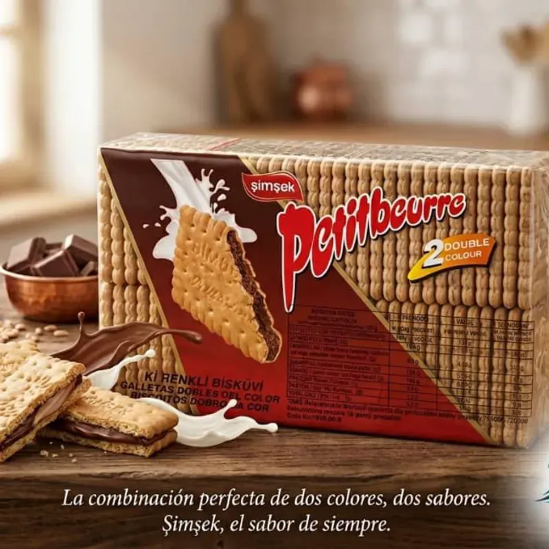 Galletas dobles con crema de cacao y vainilla.