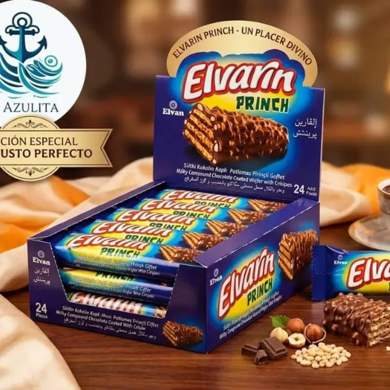 Wafer cubierto de chocolate con crispies, caja de 24 unidades.