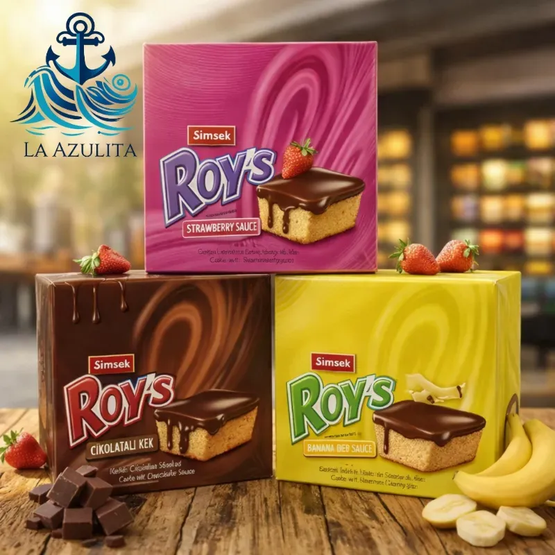 Bizcochos con salsas de fresa, chocolate o banana, listos para servir con cobertura cremosa.
