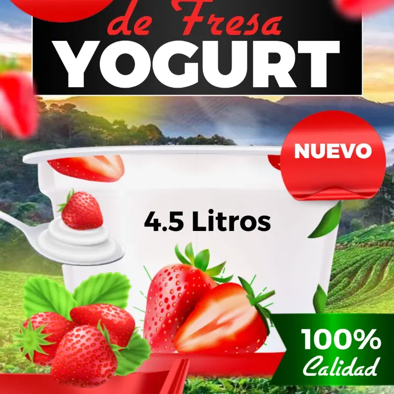 Riquísimo yogurt de fresa, de lo más selecto de La Bodega del Chago. Contiene 4.5 litros, que es lo mismo que más de 4600 gramos, que es lo mismo que más de 40 vasitos del mejor yogurt que te venden en las tiendas MLC, USD o la marca Vima. O sea, mejor precio, y más rendimiento durante el consumo.