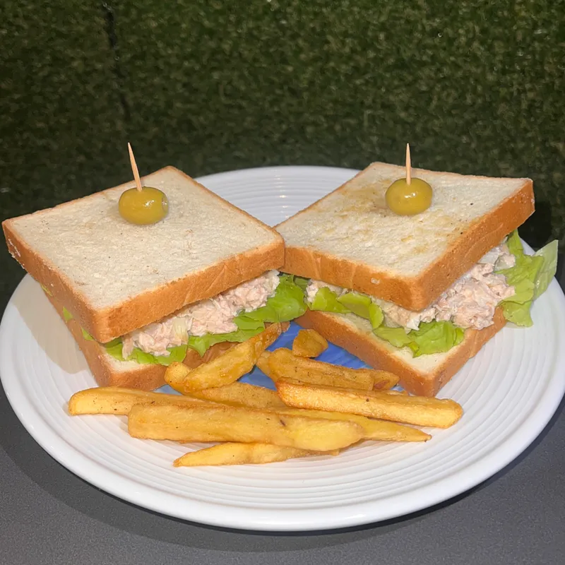 pan de molde, acompañado de una falsa de atún y lechuga * todos los bocadillos salen con una ración de papas fritas