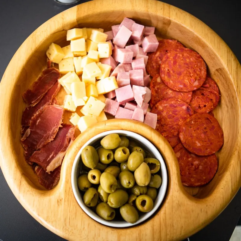 Tabla de Jamón, Chorizo, Queso, Serrano y Aceitunas perfecto para degustar