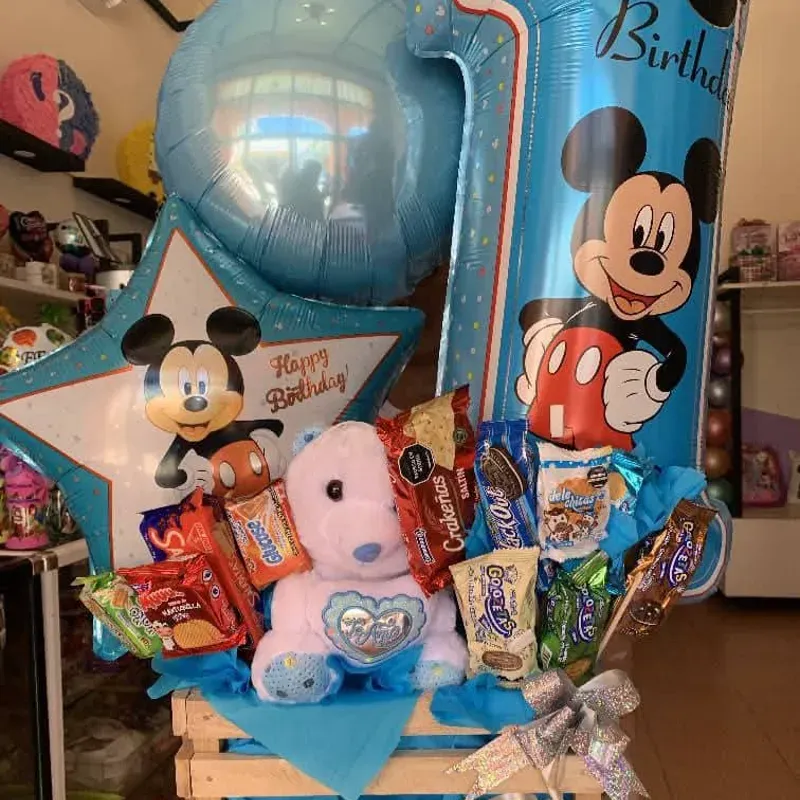 CESTA DECORADA OSO PELUCHE CONFITURAS SURTIDAS