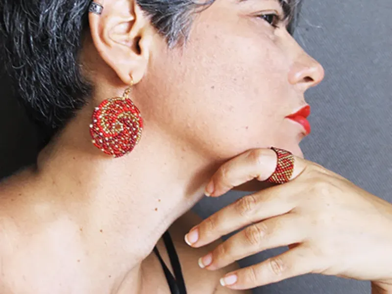 Aretes y anillo con motivos espirales.