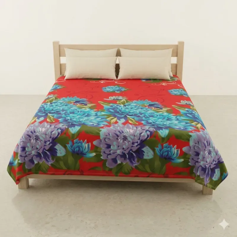 Sábana estampada con motivos florales en llamativos colores, no incluyen las fundas