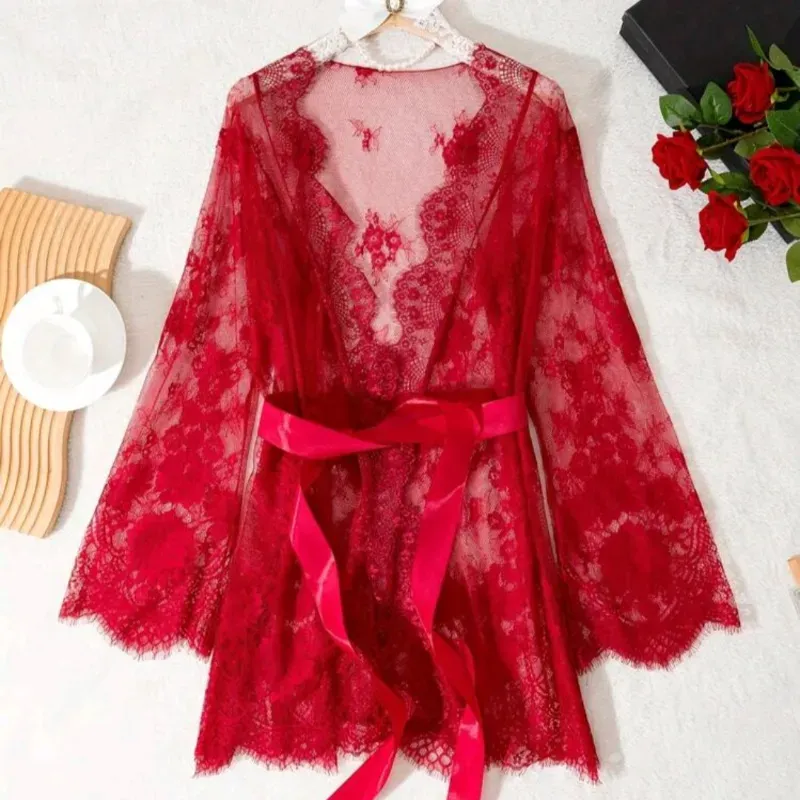 Ideal para usar sobre tu piel al salir del baño, dejando que el encaje insinúe más de lo que muestra… ❤️✨