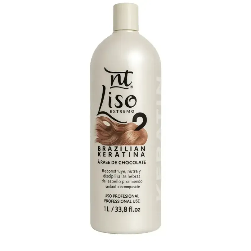 💇♀️El NT Liso Extremo Brazilian Keratina Nº2 a base de Chocolate, es un tratamiento profesional de keratina ;diseñado para reconstruir, nutrir y disciplinar las hebras del cabello. Su fórmula enriquecida con extracto de chocolate ayuda a restaurar la fibra capilar, aportando suavidad, manejabilidad y un brillo incomparable.