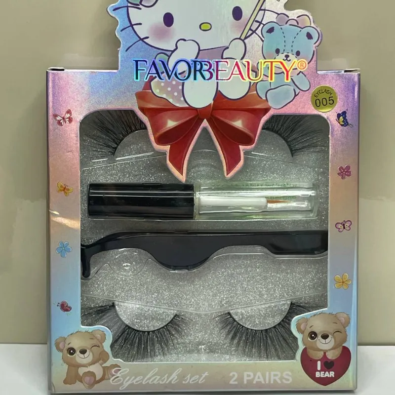 Trae 2 pares de pestañas (incluye pinza y pegamento transparente)