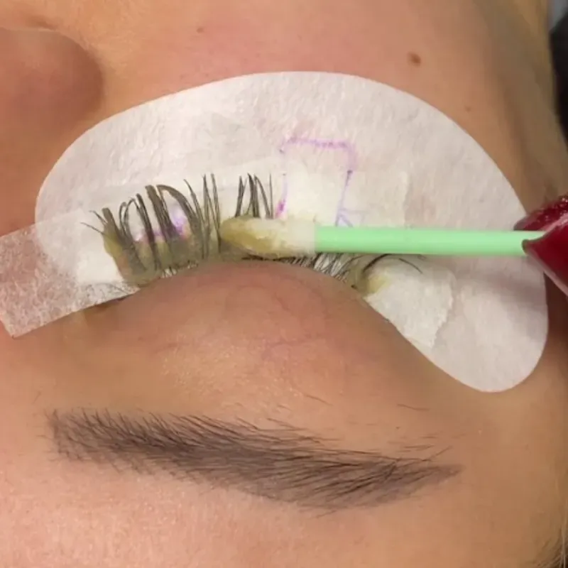 Es un procedimiento para quitar de forma segura las extensiones de pestañas que se aplicaron una por una. Se disuelve el adhesivo (pegamento) y se retiran las extensiones individuales sin tirar fuerte ni dañar las pestañas naturales.