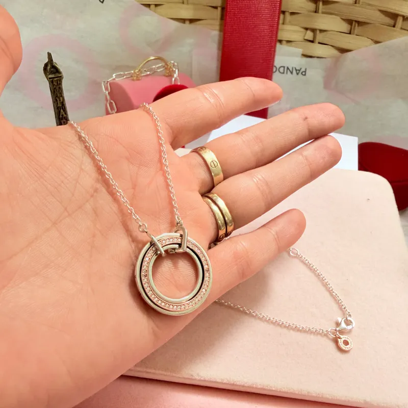 Cadena Halo Pandora con detalles oro rosa