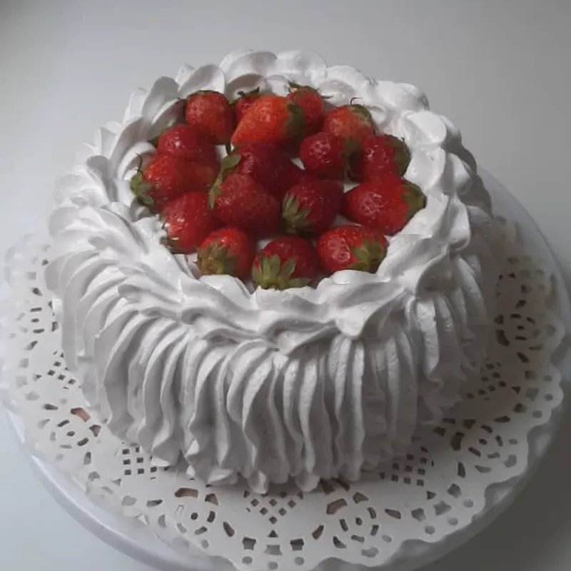 Cake de Merengue Decorado con Fresas Naturales
