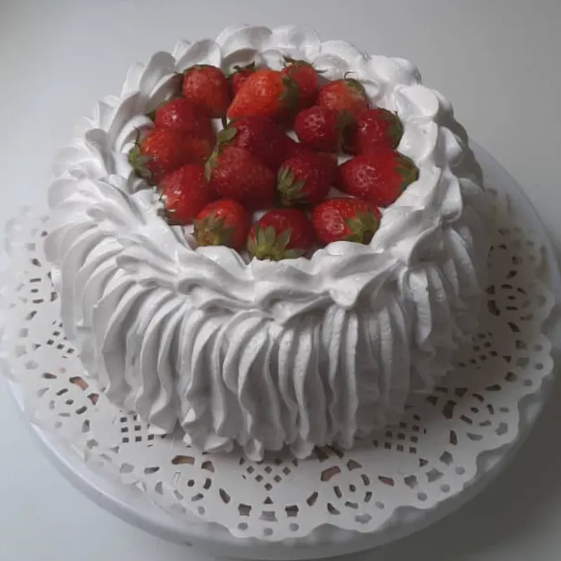 Cake de Merengue Decorado con Fresas Naturales