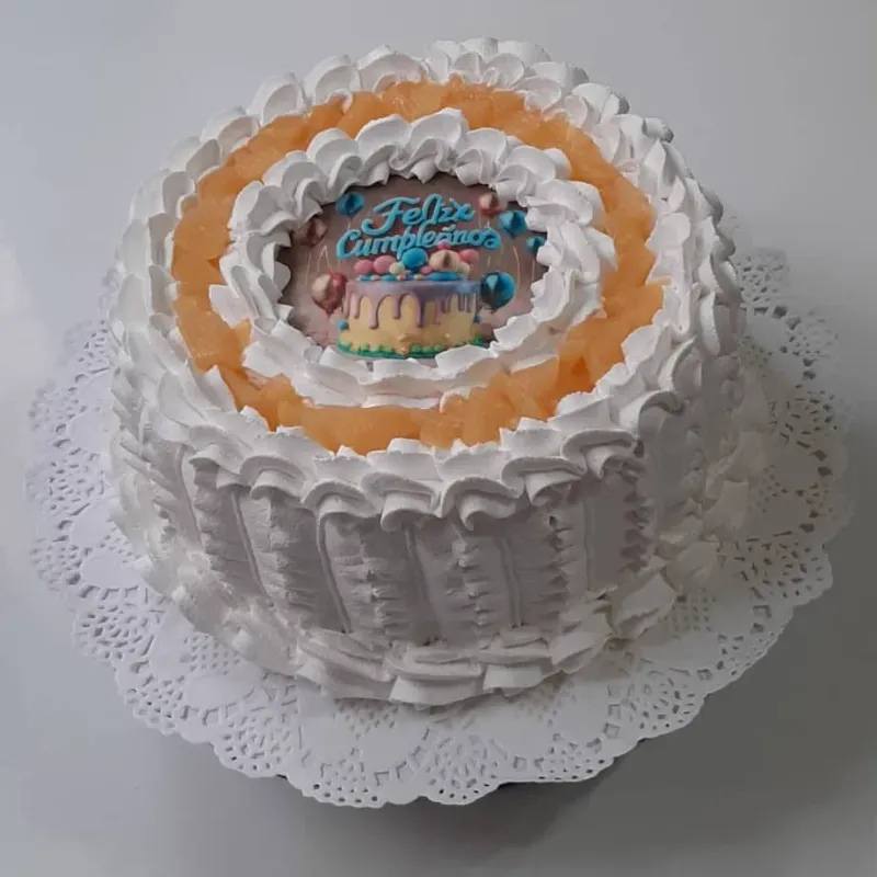 Decorado con Papel Comestible y Cóctel de Frutas
