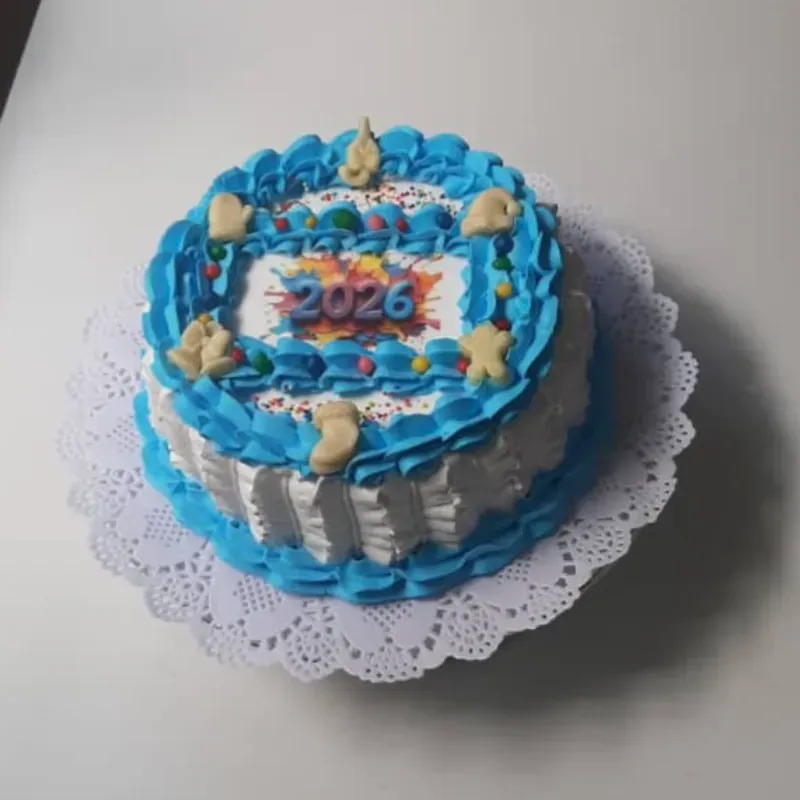 Cake de Nata Relleno de Nata Decorado con Papel Comestible y Figuras de Fondant 22 CM 16 usd o Equivalente en Mn