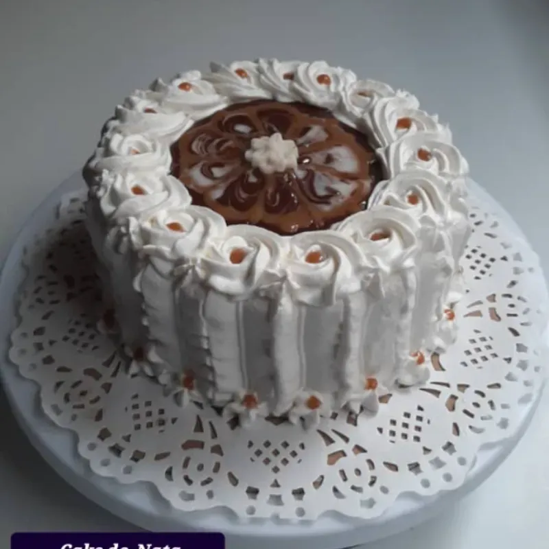Cake de Nata Decorado con Bombón Relleno de Crema de Chocolate ( 22 cm ) 15 Usd ( 25 cm ) 18 Usd O Equivalente en Mn