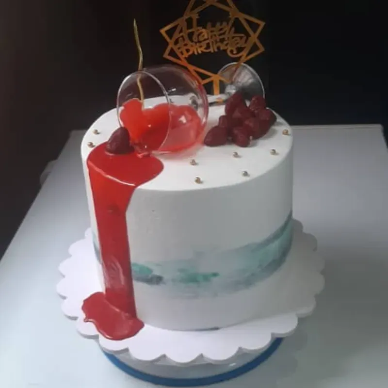 Cake de Nata Doble Relleno de Crema de Chocolate Decorado con Glaseado de Chocolate Blanco en la Copa y Fresas. ( 22 cm ) O Equivalente en Mn