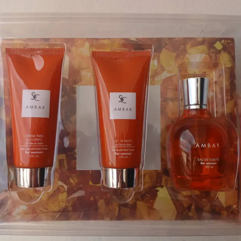 Set de perfume, crema Corporal y gel de baño Ambar