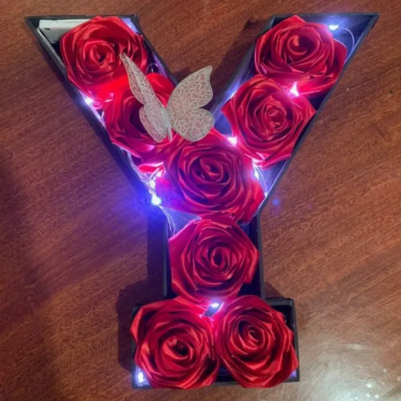 Letra de su preferencia decorada con flores eternas