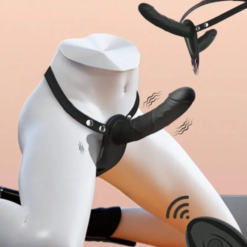 Arnés Doble Dildo Vibrador con Carga USB y Mando Inalámbrico.