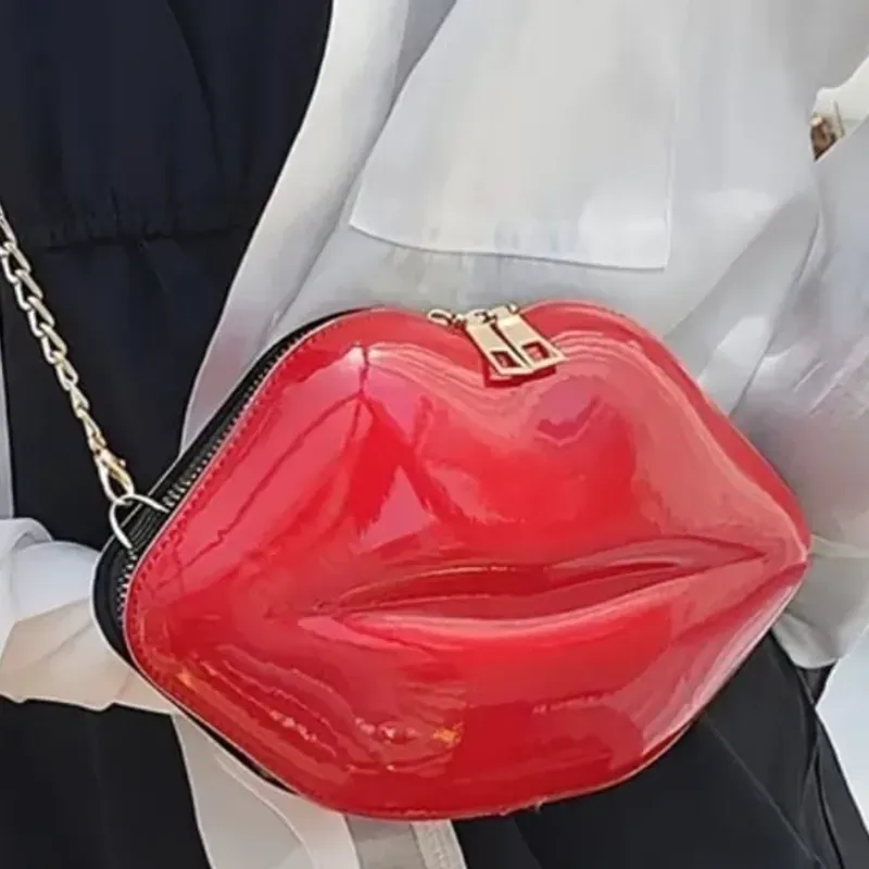 Cartera en forma de labios rojos.